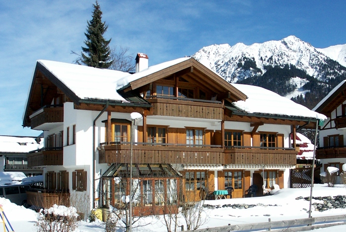 Unsere komfortable und heimelige Ferienwohnung liegt im Süden von Oberstdorf in unverbauter Lage mit 1a Blick über die verschneiten oder blühenden Berge und Wiesen.